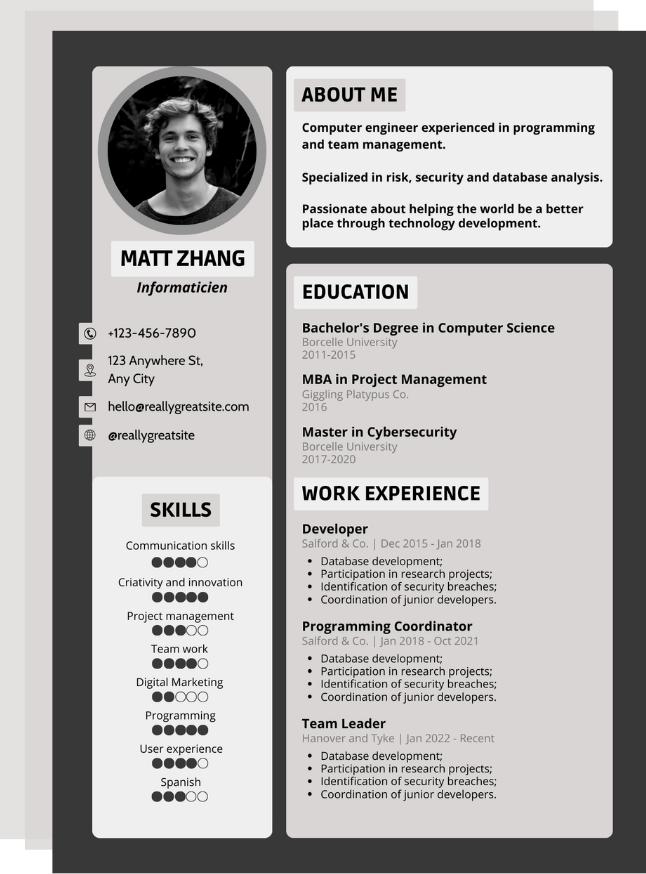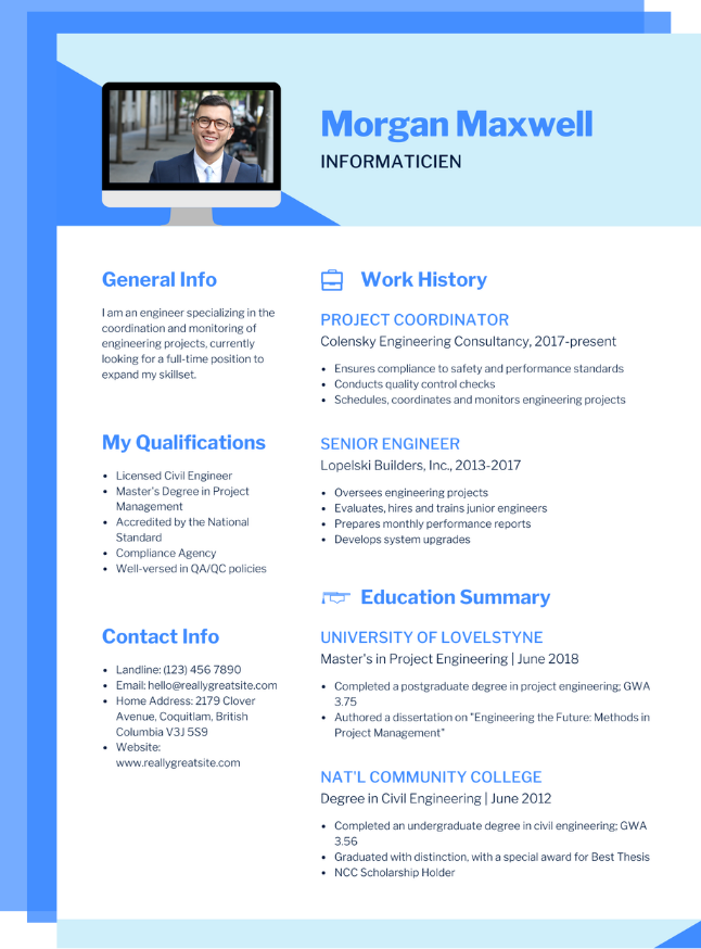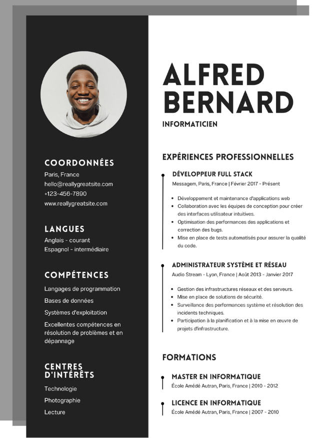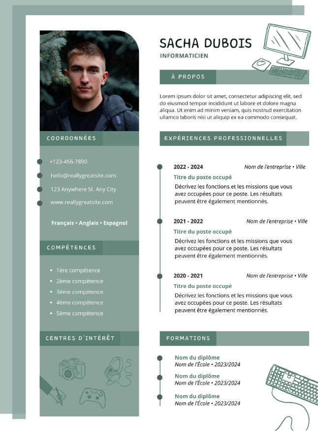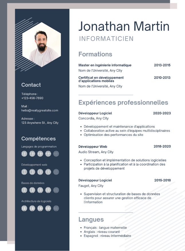 Voici les différents template pour le métier Informaticien