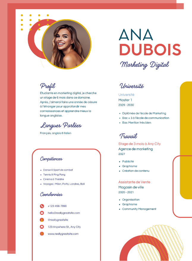 Ajouter une experience Choisir le modèle Généré son CV